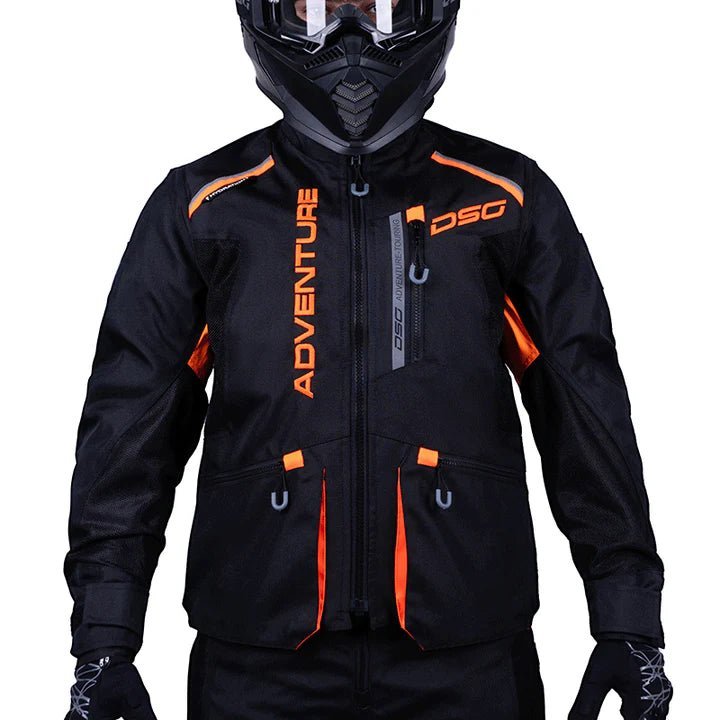 DSG Adventure Riding Jacket is a lightweight, dual-sport adventure touring jacket designed for superior mobility and airflow, making it the ultimate companion.