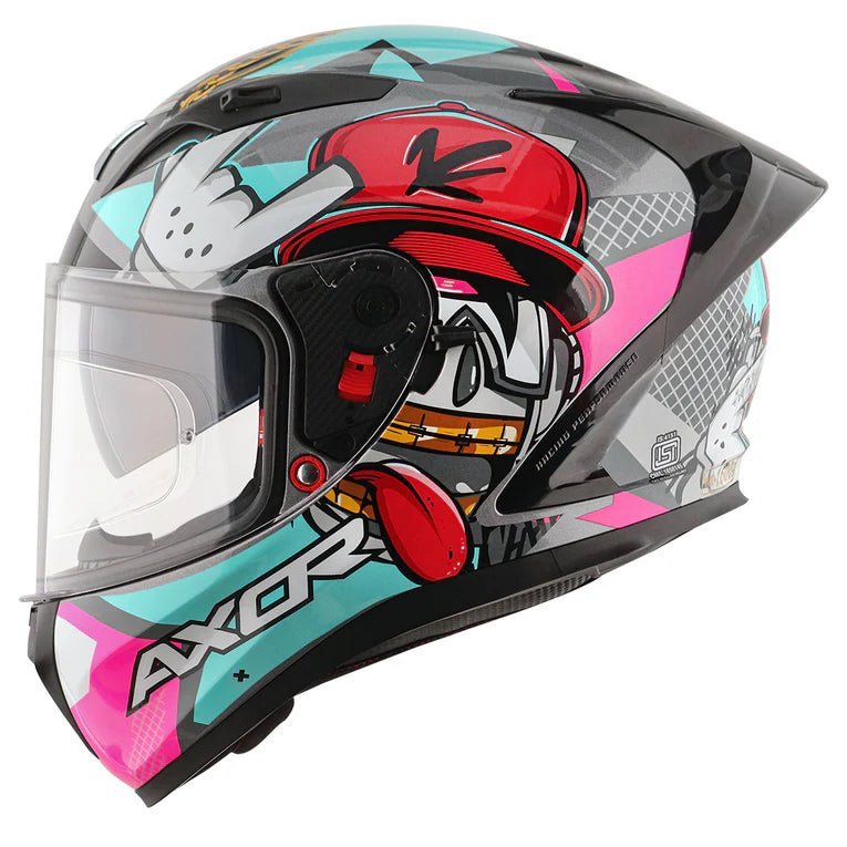 AXOR presents you the Street helmet with the HIP HOP graphic which will uplift you to ride on the rhythm of the throttle and groove with the road adventure. The graphic is cool and swaggy as you are! So what are you waiting for? when you have got exactly what your attitude demands!